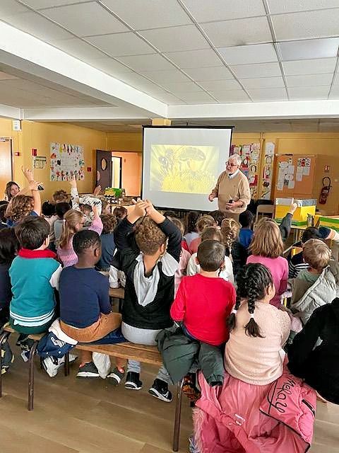 Lundi 18 novembre, M.Verpeaux, apiculteur de la Côte d'Or et qui vient depuis de nombreuses années, a présenté aux élèves des 4 classes de CPB, CP/CE2, CE1 et CE1/CM1 ses ruches, ses abeilles, ses vêtements et son matériel d'apiculteur. Il a parlé avec passion de son métier et de ses abeilles !